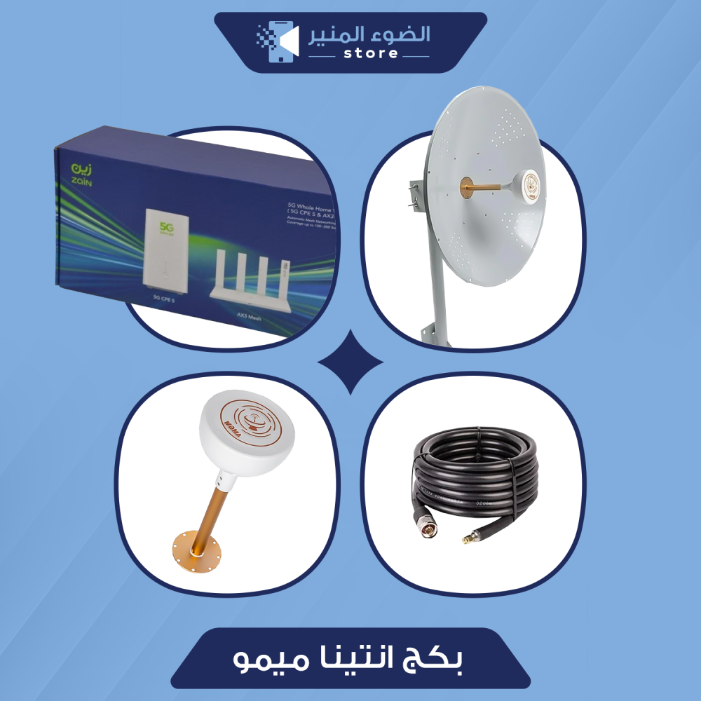 - يجمع بين راوتر هواوي CPE 5 المفتوح لكل الشرائح، وأنتينا ميمو الذهبية 30 ديبي، ومقوي إشارة AX3 بتقنية WiFi 6.